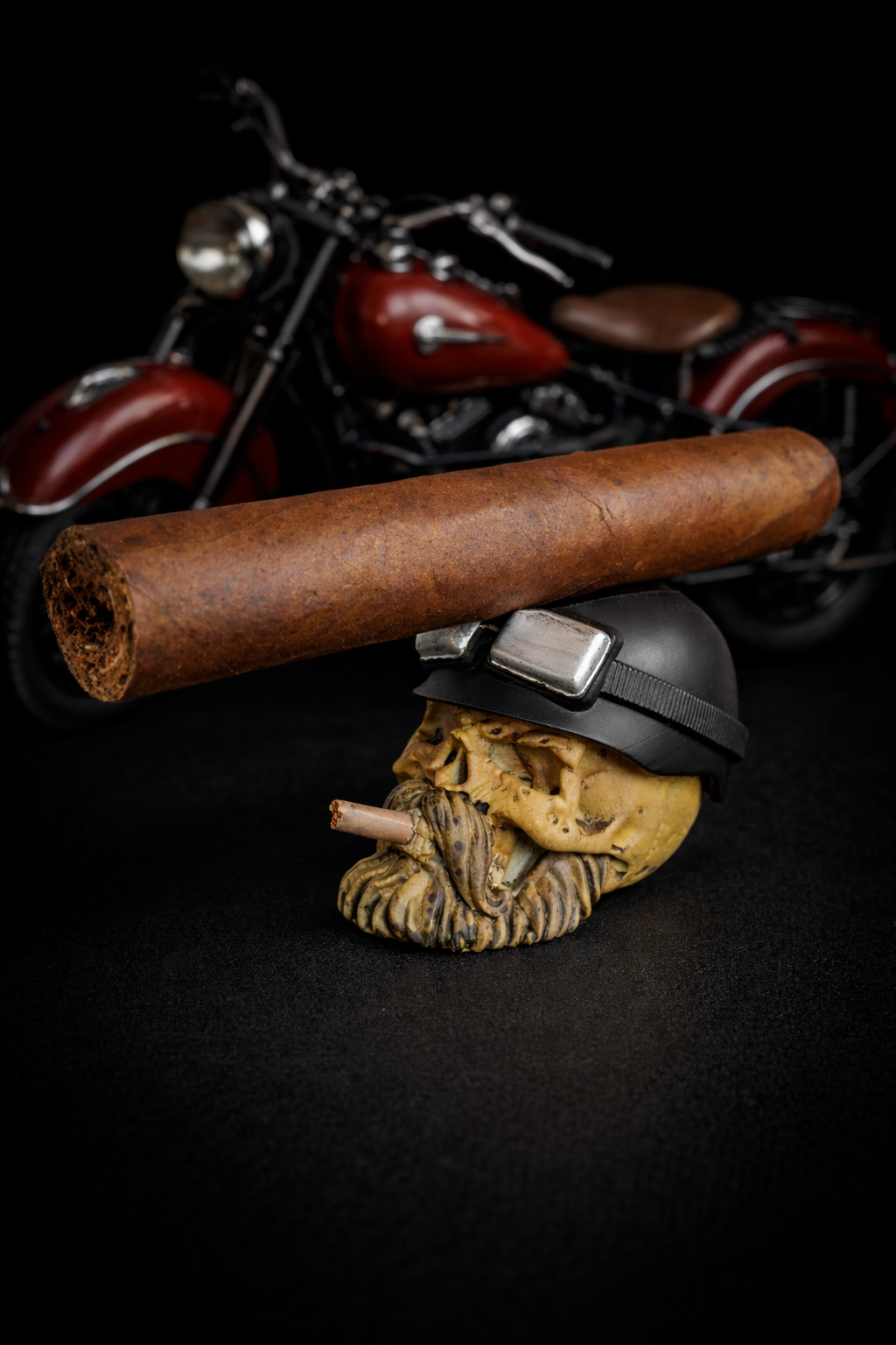 Pièce unique de cet accessoire élégant et pratique, le skull Biker .Devenu un incontournable des clubs et fumoirs, il vous permet de différencier votre cigare de ceux des autres convives aficionados.